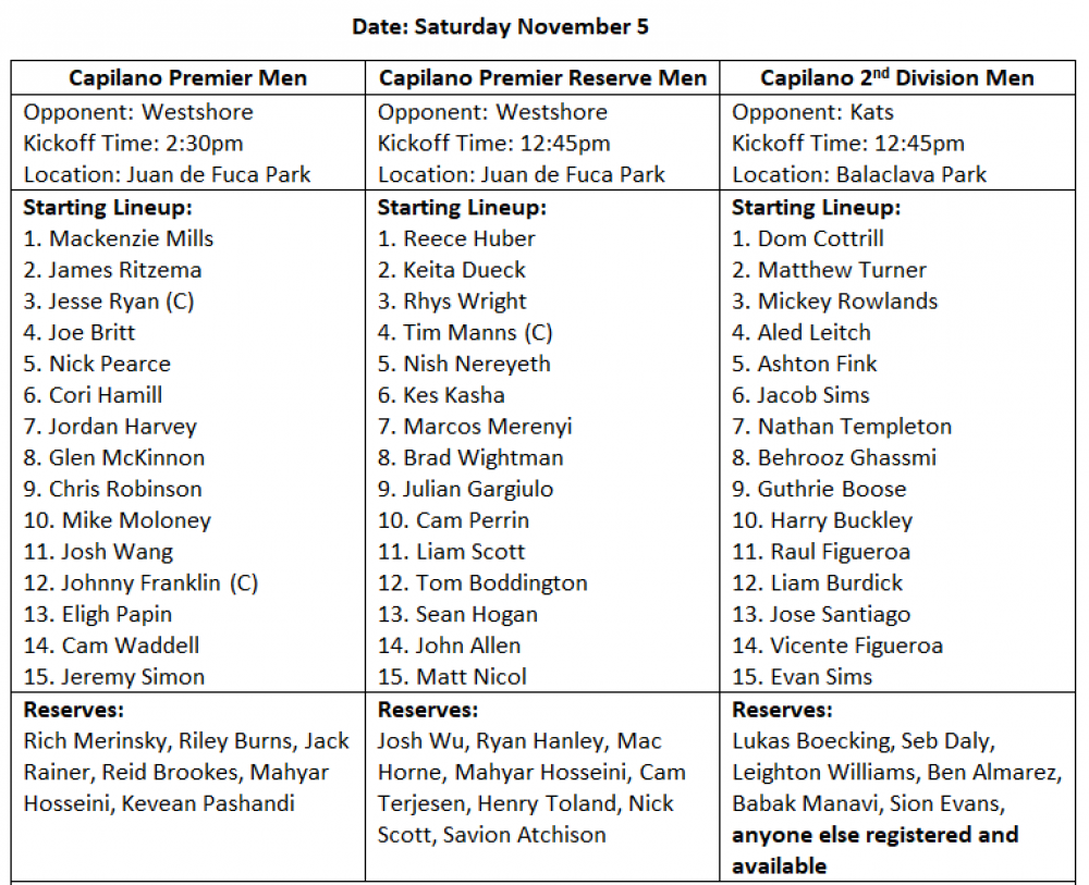 Capilano RFC Match Schedule - November 5th, 2022