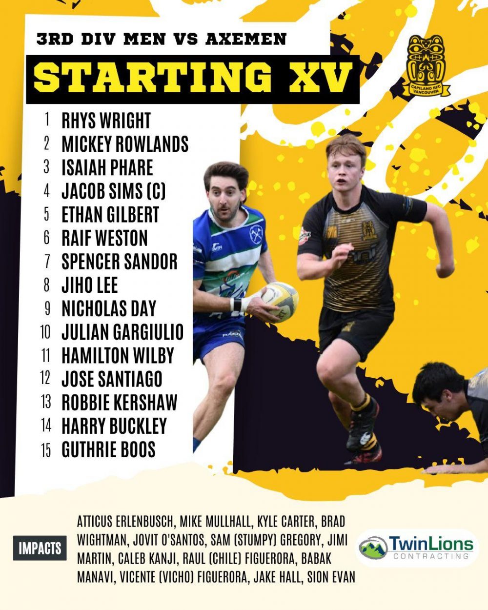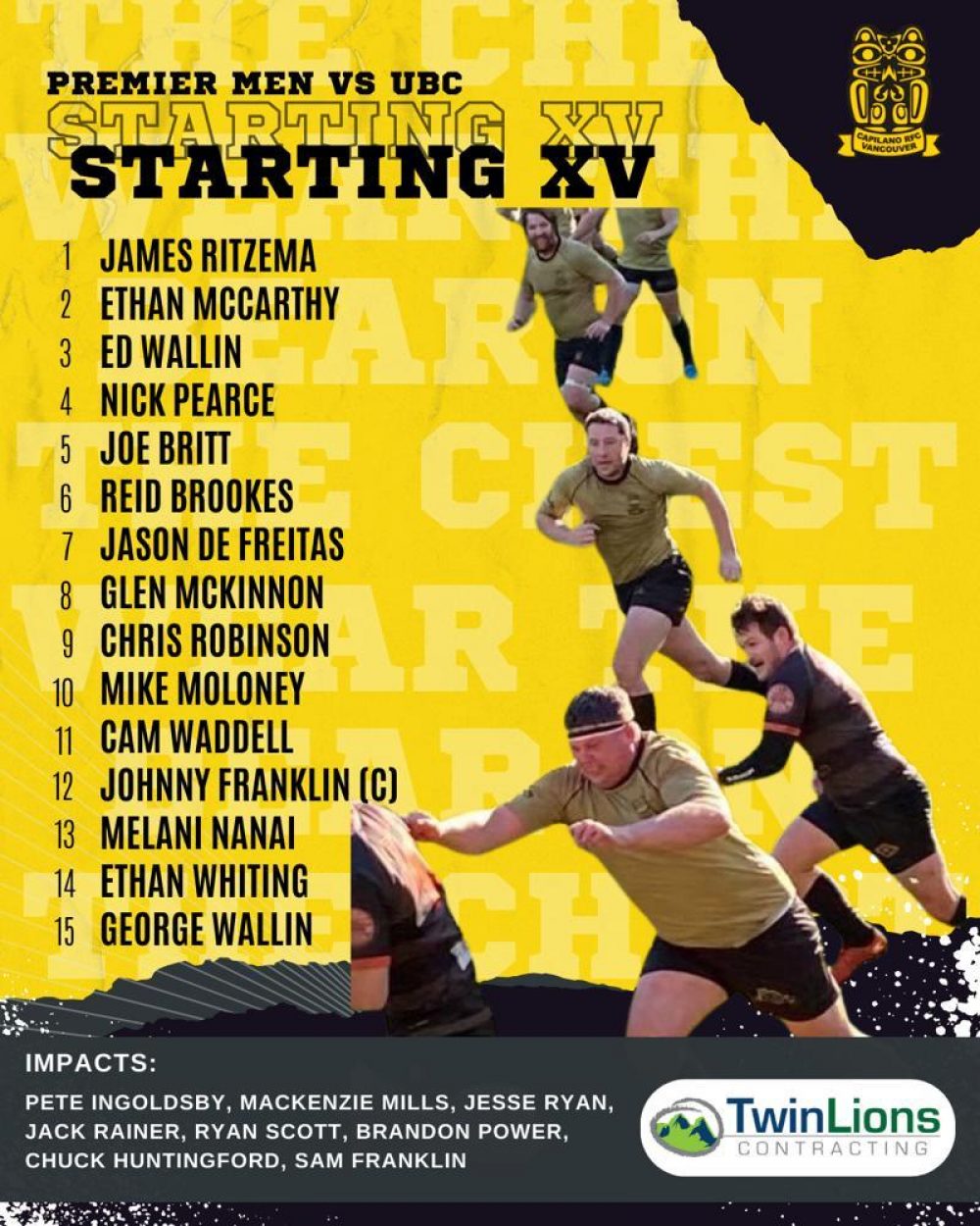 Capilano RFC Rosters - February 3, 2024