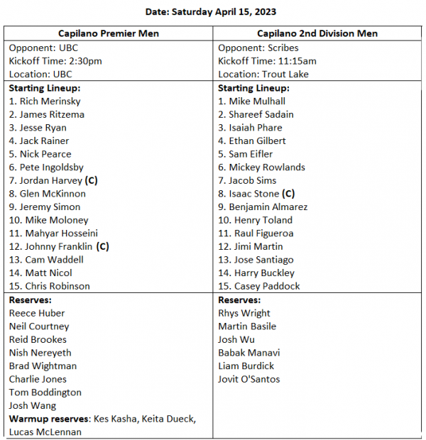 - 11:15am Capilano 2nd Division Men v Scribes @Trout Lake
